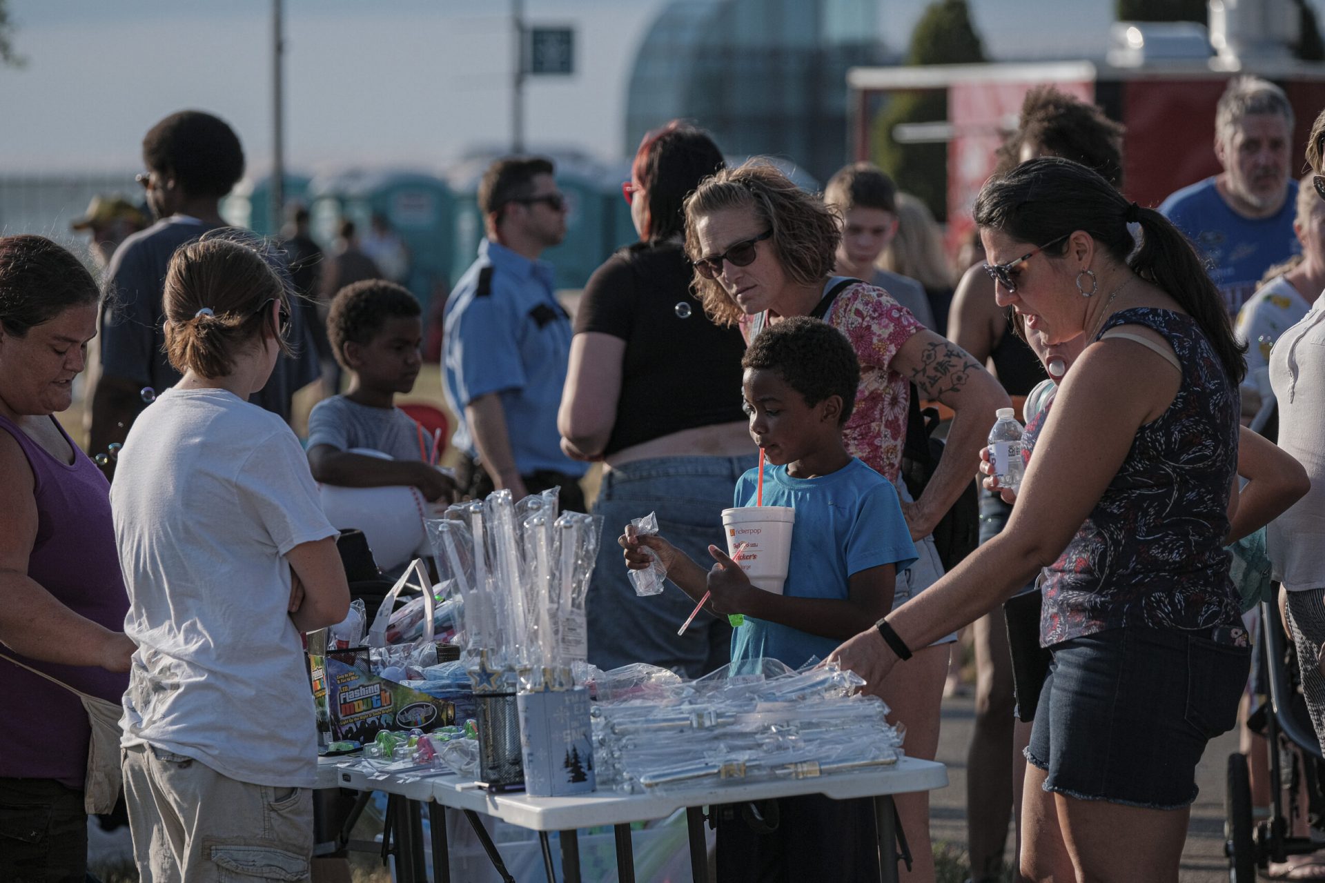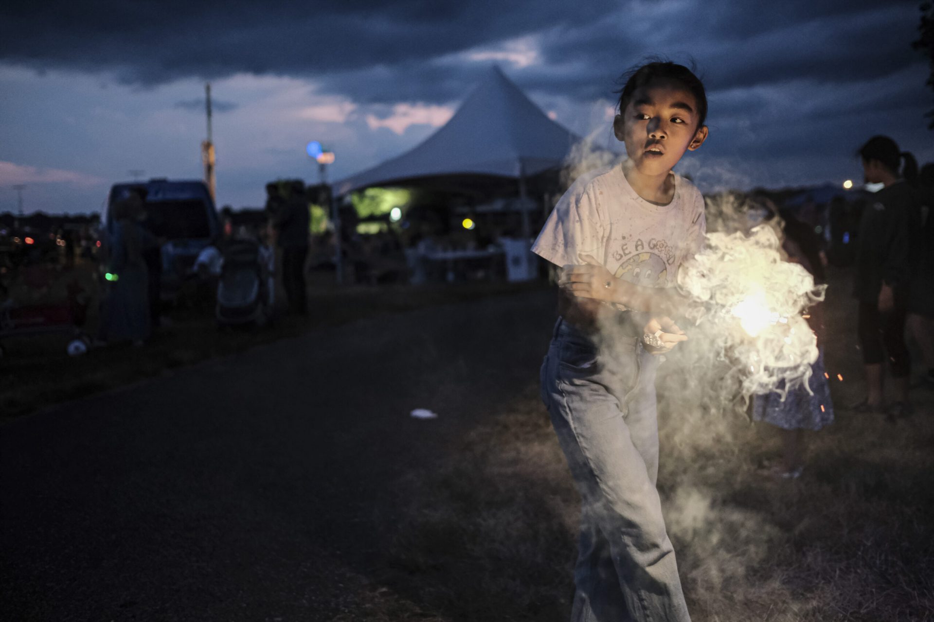 Zeppelin Davis blows bubbles during QMIX Musical Fireworks in Columbus, Ind., Friday, July 1, 2022.