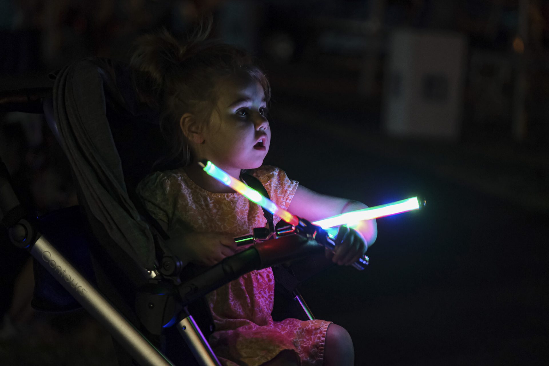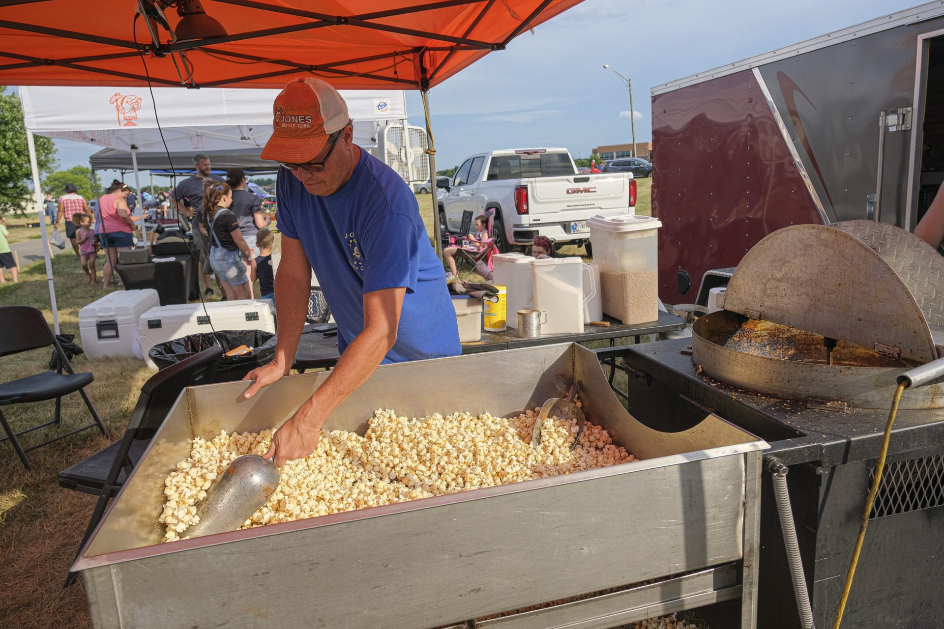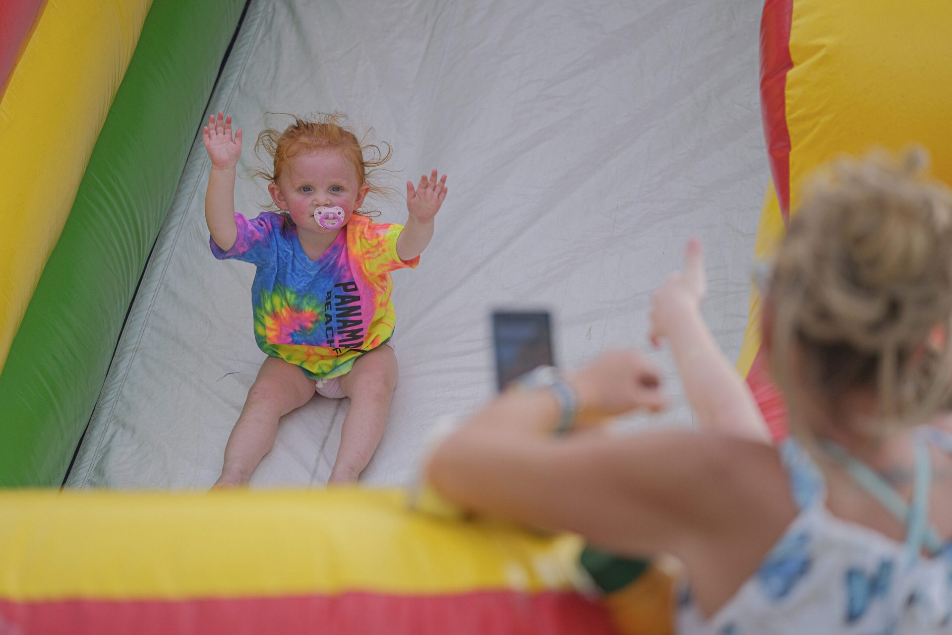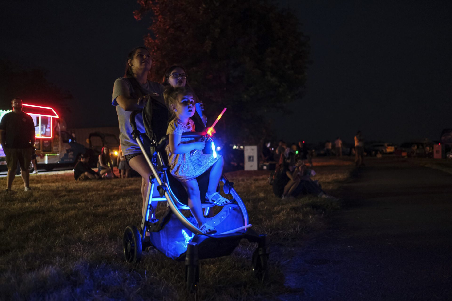 Others came intent on letting youngsters bounce seemingly as high as a firework or two amid a row of children’s inflatables. Kelley Stillabower was thinking precisely that with 10-year-old daughter Zoe McDonald, springing this way and that as mom watched. They planned to catch the fireworks at home right near the airpark just a short distance away.