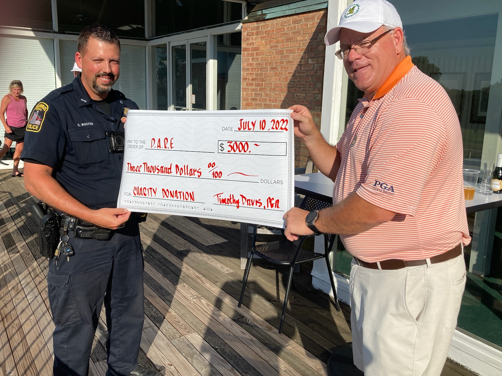 Davis put this year’s tournament together with the idea to raise money for charity. Following Sunday’s final round, Davis and Otter Creek general manager Wiley Umphress presented a $3,000 check to the Columbus’ D.A.R.E. program.