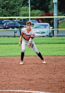 Columbus East’s Kenzie Foster gets in position at second base for her Beverly Bandits travel team.