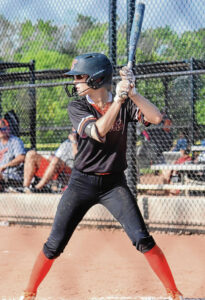 Columbus East’s Kenzie Foster waits on a pitch for her Beverly Bandits travel team.