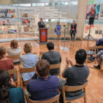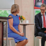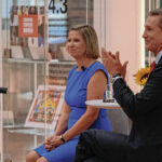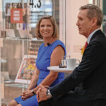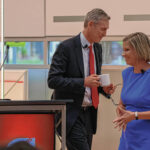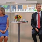 Mike Wolanin | The Republic Incoming Cummins President and CEO Jennifer Rumsey, left, and Cummins Chairman and CEO Tom Linebarger answer questions during a press conference at the Cummins Corporate Office Building in Columbus, Ind., Thursday, July 14, 2022. Rumsey is the first woman CEO since the company was founded over 100 years ago.