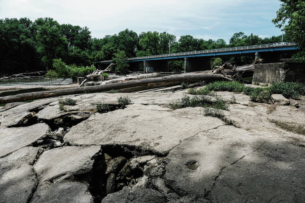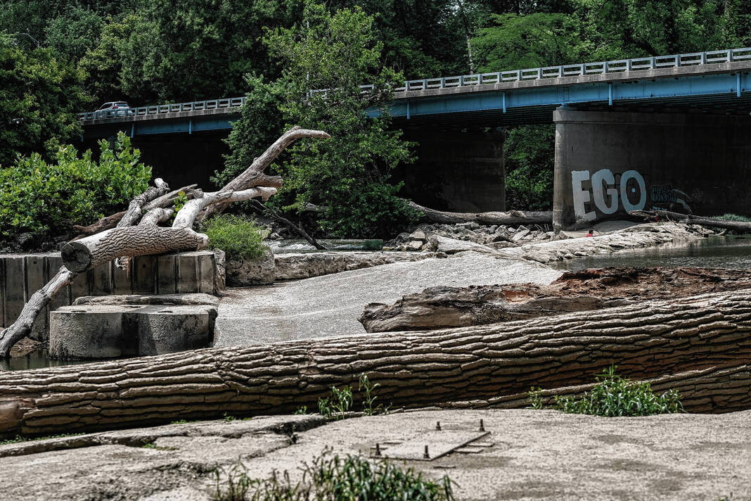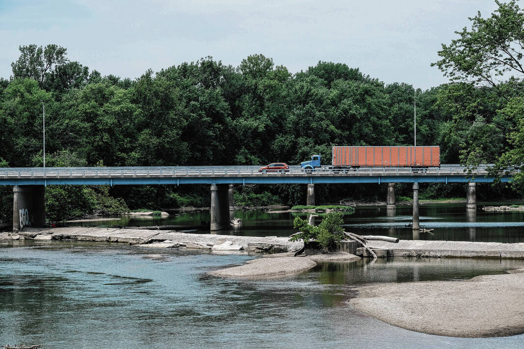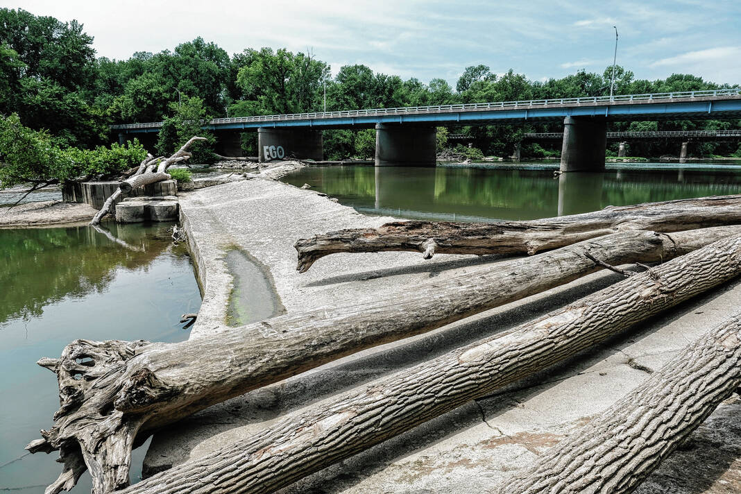 Mike Wolanin | The Republic A view of the low head dam between the Third Street and the Robert N. Stewart bridge in Columbus, Ind., Monday, July 11, 2022.