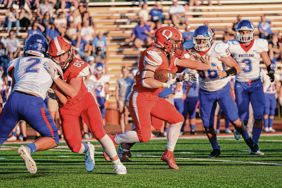 Class 5A No. 6 Whiteland scored 21 unanswered points over the final two quarters to rally for a 28-10 season-opening win at East.