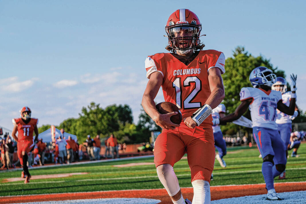 RECEIVING — Whiteland: Hicks 1-28, Cameron Cooper 1-16, Emberton 2-15, Armstrong 1-3. Columbus East: Chase Zapfe 3-52, Smith 2-14, Nico Alvarez 1-9, Devon Tekulve 1-8, Blake Borkhardt 1-5.