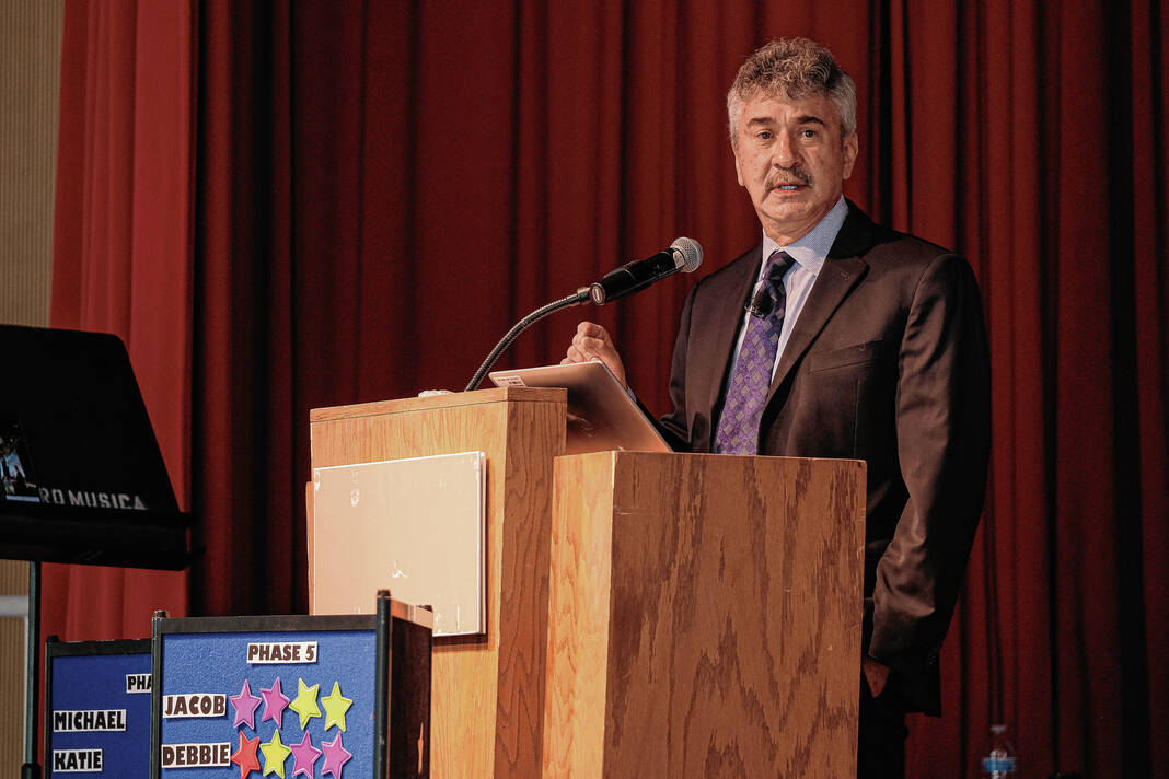 Mike Wolanin | The Republic Indiana Supreme Court Justice Steven David gives the keynote speech during the Bartholomew County Drug Court graduation at The Commons in Columbus, Ind., Tuesday, July 12, 2022.