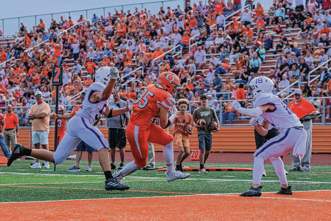 East then out together a 15-play, 93-yard drive to take a the lead. Ethan Duncan hit tight end Blake Borkhardt for the final 12 yards, and Nathaniel Hedrick’s extra point put the Olympians ahead 7-6.