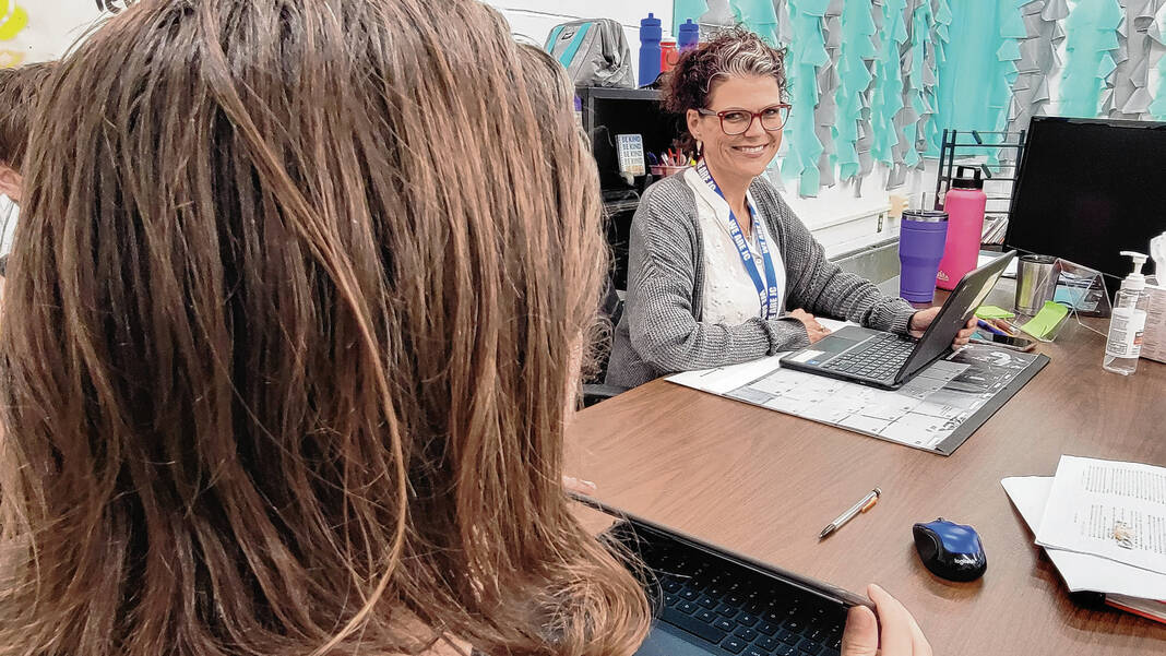Teacher Jennie Campbell works with a student recently at Jennings County High School in North Vernon.