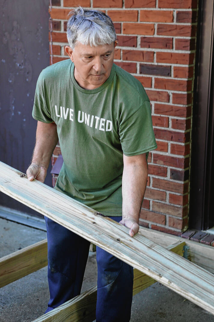 Carla Clark | For The Republic Jeff Crouse places a board during the build of the 10th ramp for the Ramp It Up for United Way program, Friday, September 9, 2022.