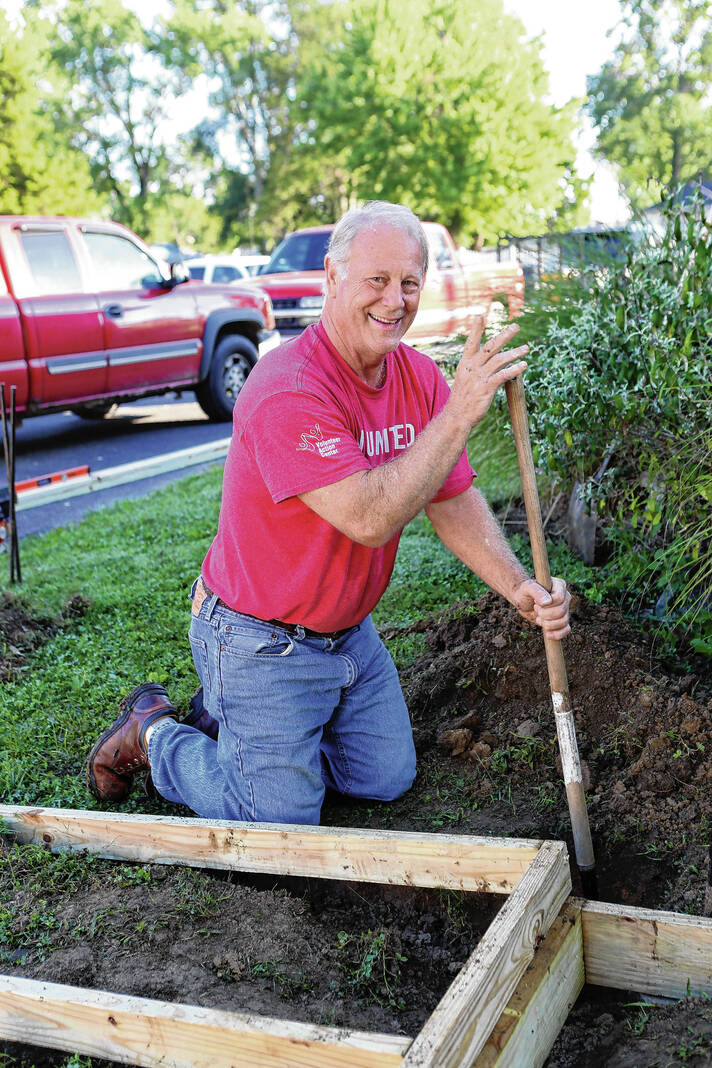 Carla Clark | For The Republic Ron Schneider digs holes for the posts during the build of the 10th ramp for the Ramp It Up for United Way program, Friday, September 9, 2022.
