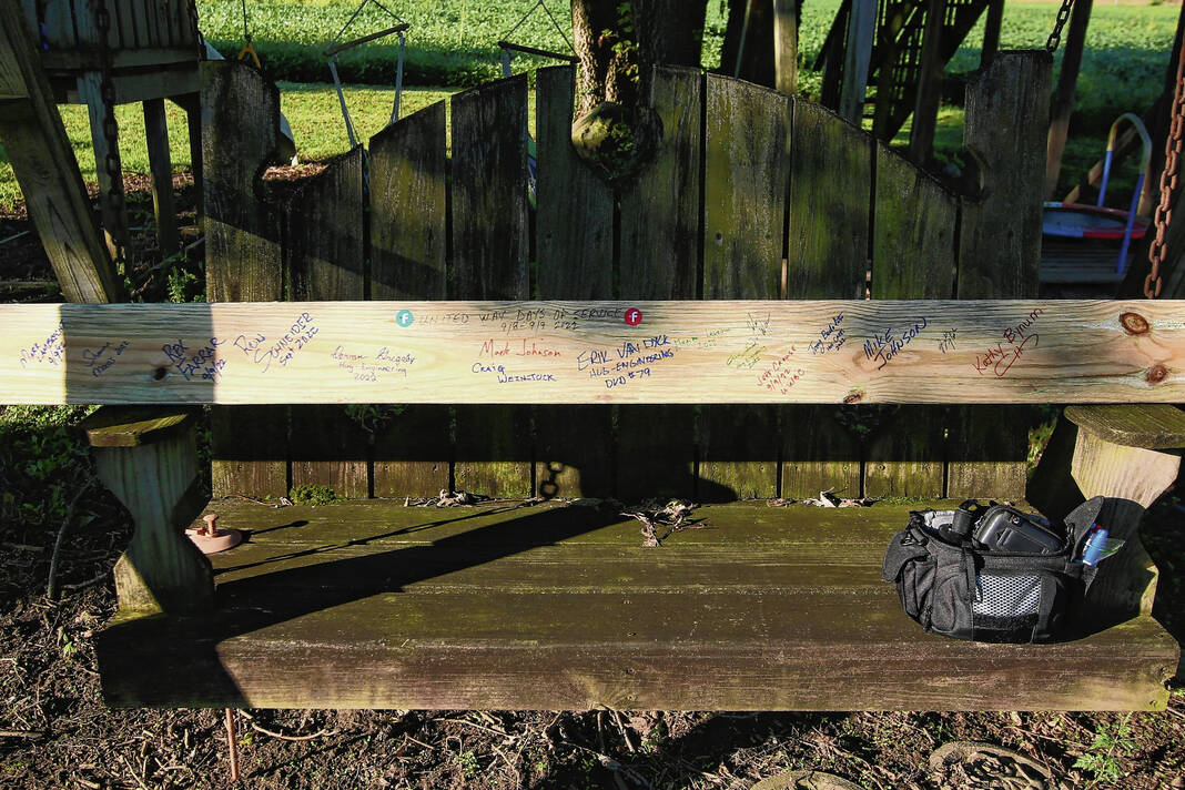Carla Clark | For The Republic The board with the names of volunteers who worked on the 10th ramp for the Ramp It Up for United Way program, Friday, September 9, 2022.