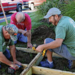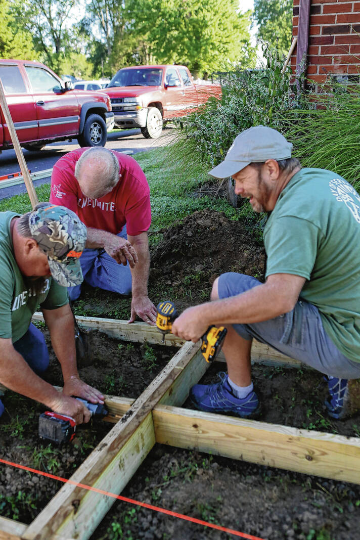 Carla Clark | For The Republic Mike Johnson, clockwise from left, Ron Schneider and Mark Lambrecht, during the build of the 10th ramp for the Ramp It Up for United Way program, Friday, September 9, 2022.