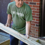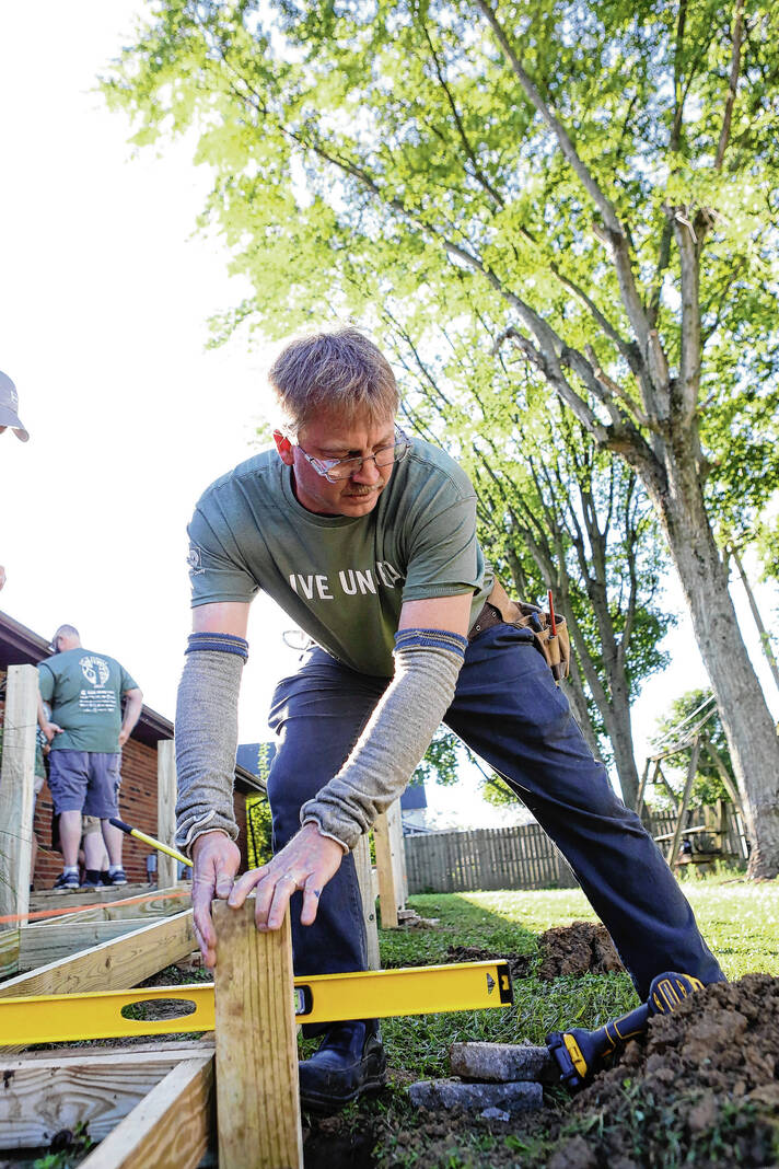 Carla Clark | For The Republic Craig Weinstock sets a post during the build of the 10th ramp for the Ramp It Up for United Way program, Friday, September 9, 2022.
