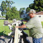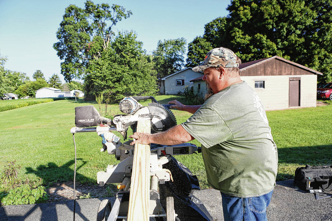 Carla Clark | For The Republic Mike Johnson saws a board during the build of the 10th ramp for the Ramp It Up for United Way program, Friday, September 9, 2022.