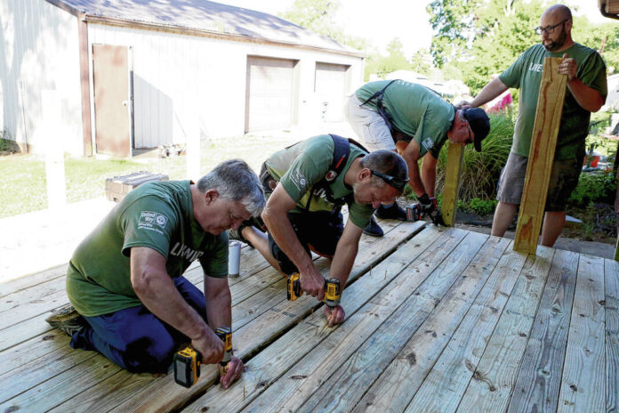 Carla Clark | For The Republic Volunteers during the build of the 10th ramp for the Ramp It Up for United Way program, Friday, September 9, 2022.
