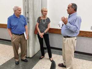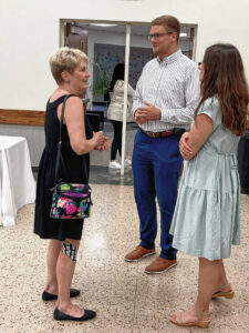 Cramer Award recipient Bob Arthur, right, talks with John and Marianne Hinds prior to Wednesday’s Cramer Awards program at Donner Center.