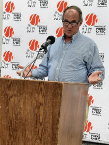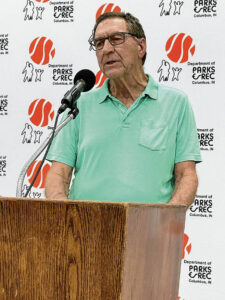 “Bob is a loyal, energetic, positive individual who cares about others,” said former Columbus High School and North gymnastics coach John Hinds in his presenting speech. “His enthusiasm as a coach to teach and motivate the gymnasts is a constant. He took his family early on to Singapore to coach there. He is a master of his work. I was grateful to have his leadership. He gives of himself to all for the good of all and the team.”