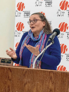 Cramer Award recipient Carrie Utterback speaks at Wednesday’s Cramer Awards at Donner Center.