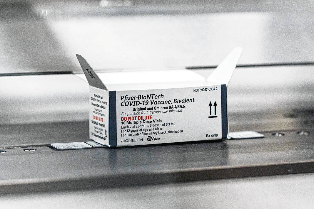 Photo provided This photo provided by Pfizer shows packaging for the company’s updated COVID-19 vaccine during production in Kalamazoo, Mich. U.S. regulators have authorized updated COVID-19 boosters, the first to directly target today’s most common omicron strain.