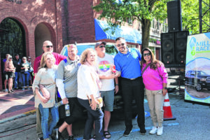 Bob Lang and Caron Lang, from left, Sean McAuliffe, Cindy Frey and Eric Frey, the winner of the truck, Leo Portaluppi of Columbus Auto Group and Miriam Portaluppi at the truck give away during the Mill Race Marathon in Columbus, Ind., September 24, 2022. Carla Clark | For The Republic