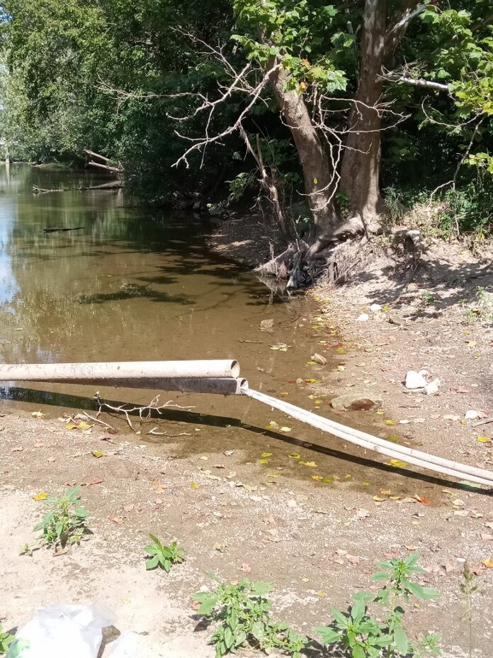 Provided image of pipes protruding from bank of the Flatrock River, being investigated by the parks department in Mill Race Park.