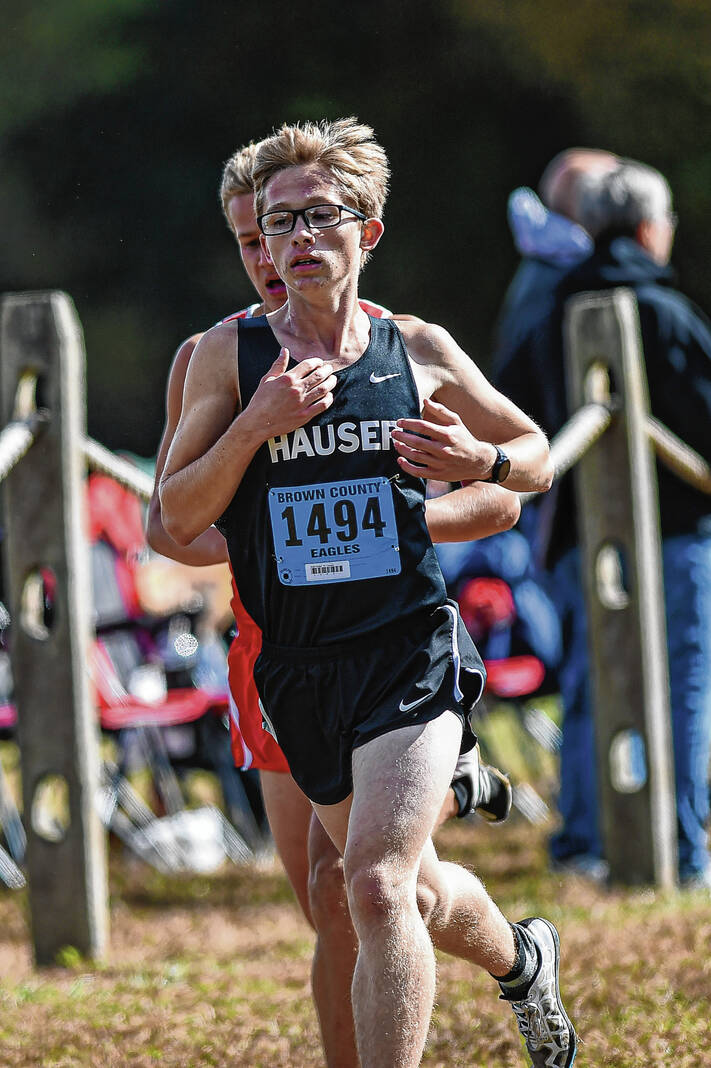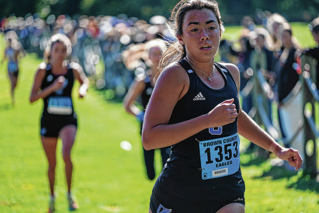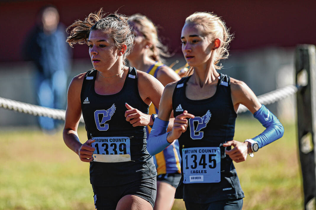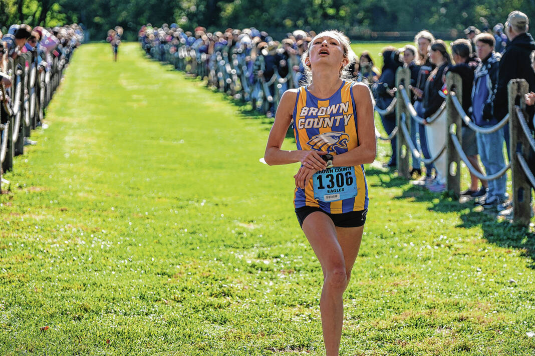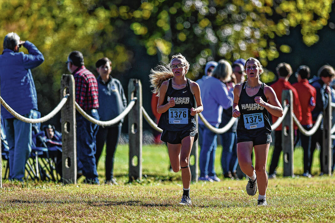 Brown County’s Hadley Gradolf, who finished fourth in 19:01.32 and Sadie Hiatt, who took 28th in 22:57.44, qualified for regional as individuals, along with Hauser’s Lucie Asher and Madison Hollman, who were 34th and 36th in 24:37.95 and 25:01.32.