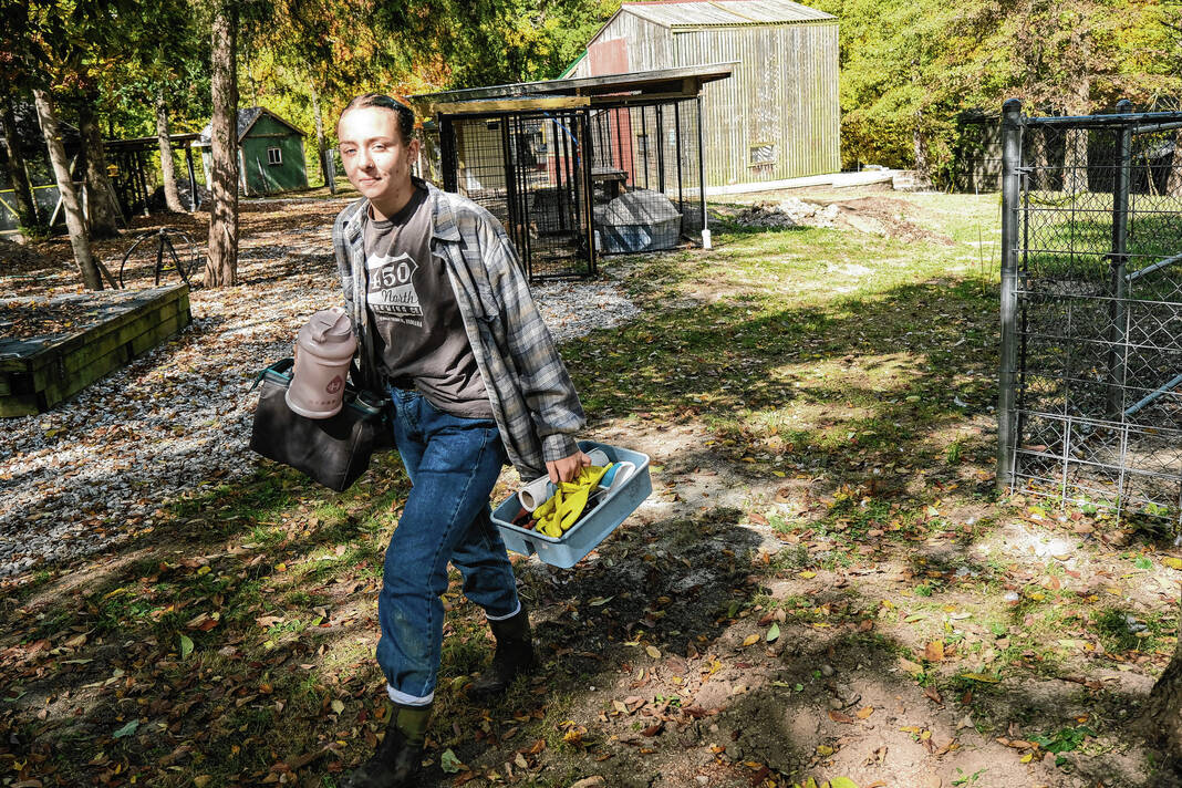 Mike Wolanin | The Republic Kathy Hershey, a founder of Utopia Wildlife Rehabilitators, sits in a vehicle at Utopia in Hope, Ind., Thursday, Oct. 13, 2022.