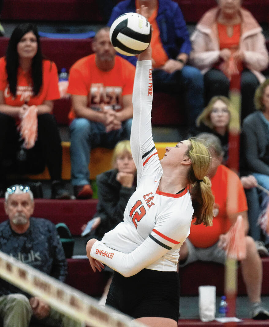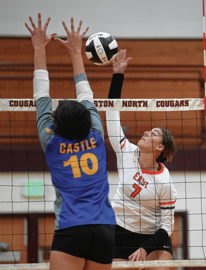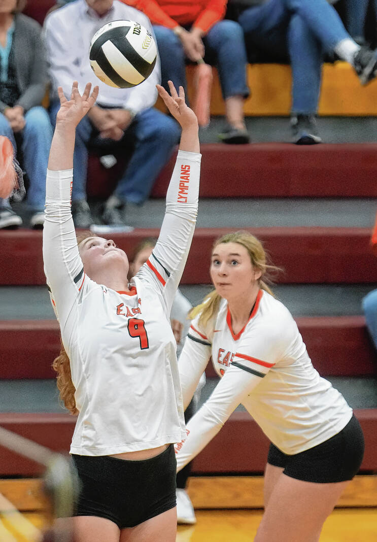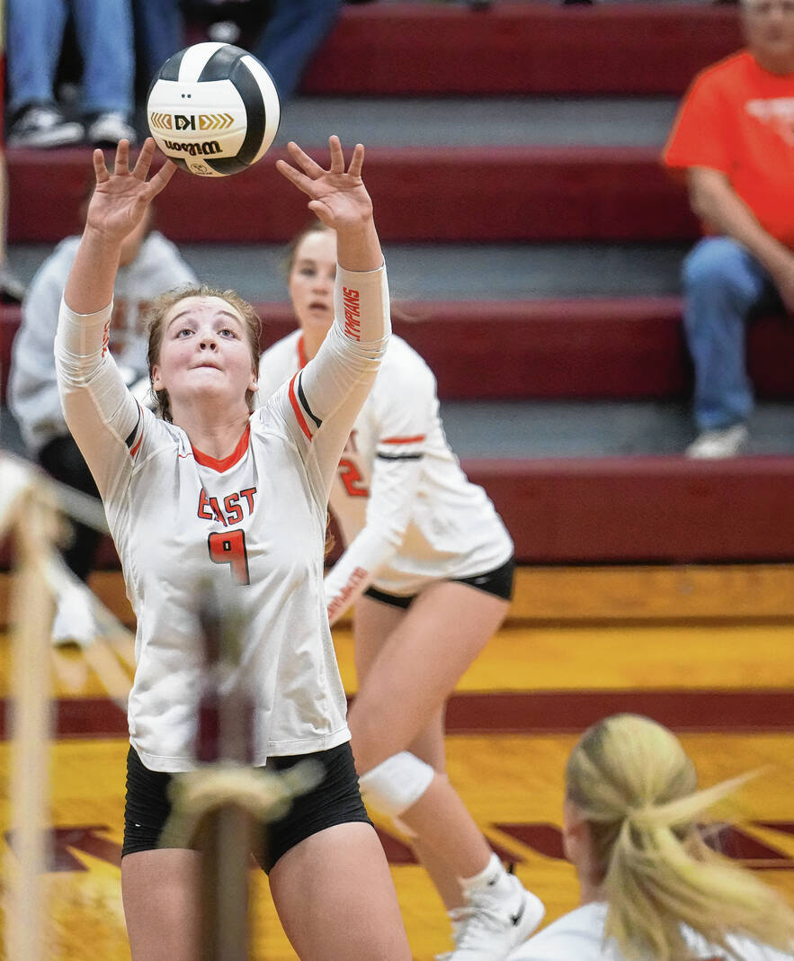 Senior Gabby Dean led East with 13 kills and had two assist blocks. Madeline Cline added 11 kills, and Caroline Frost had eight kills. Kenzie Foster and Chloe Gilley each notched 13 digs, while Erin Williams had six digs and 29 assists.