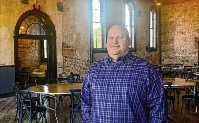 IBJ photo/Greg Weaver Jason Foltz, Blessing’s Opera House co-owner, is shown in a portion of the renovated building.