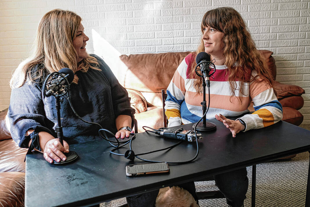 Mike Wolanin | The Republic Bonnie Boatwright, left, and Brittany Gray pose for a photo at Boatwright’s home where they record their podcast RomCom Love in Columbus, Ind., Sunday, Oct. 2, 2022.