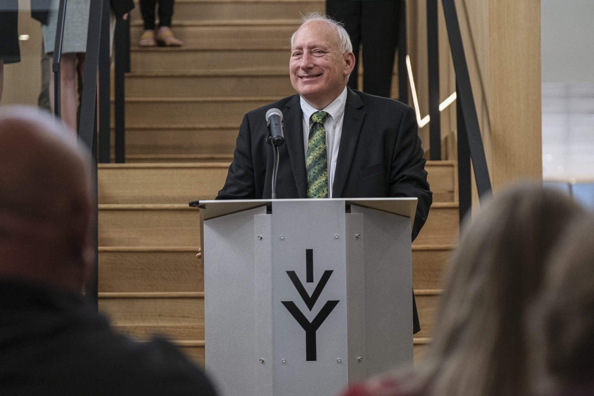 Local philanthropist and business owner Tony Moravec prepares to speak at the dedication of Ivy Tech’s new campus building named Moravec Hall during a ribbon cutting ceremony at the building in Columbus, Ind., Wednesday, Oct. 5, 2022. The building is named after Moravec.