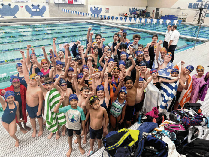 Donner Swim Club athletes celebrate following last weekend’s Aaron Fry Invitational at Columbus North.