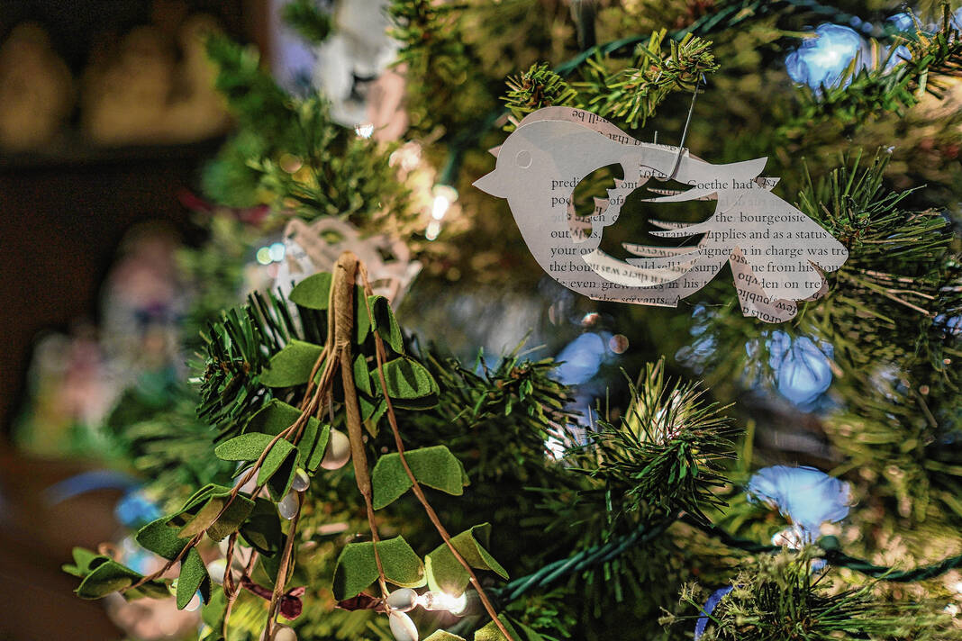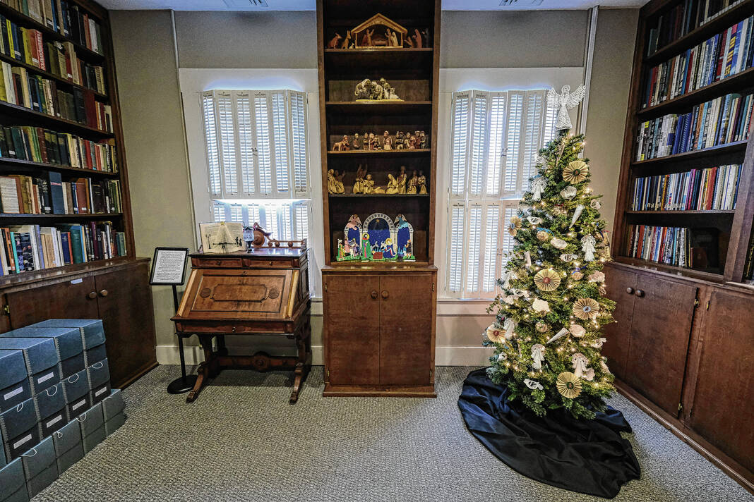 In the library, which is available to local residents to trace family roots, will display Looking Back – a book-themed tree with handcrafted ornaments created with pages from old books and displays of vintage eyewear from the permanent collection and from a local private collection.