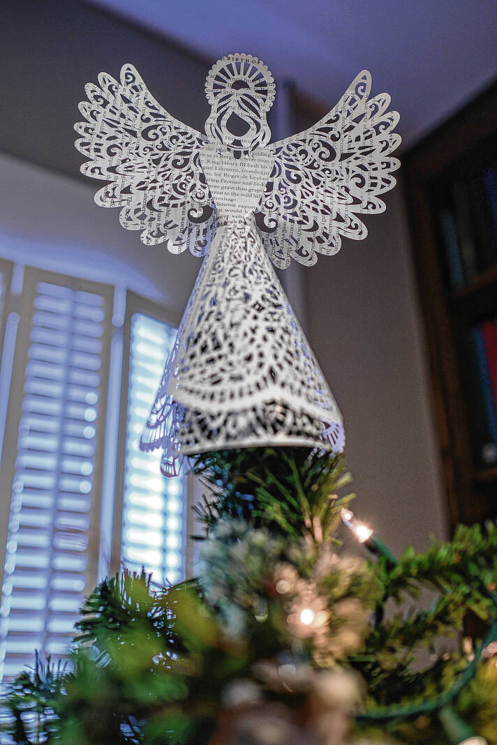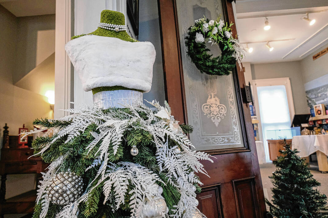 Take a look at her early inspiration just inside the door of the facility at 524 Third St. in downtown Columbus. There you will find “Lady in White,” the first of 14 festive trees.