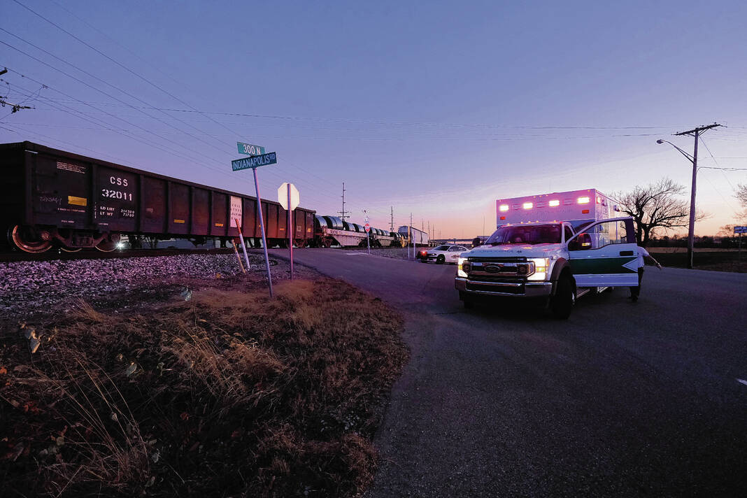 Mike Wolanin | The Republic First responders were sent to the Louisville & Indiana railroad tracks along Indianapolis Road at Lowell Road for a car-train collision late Monday afternoon.