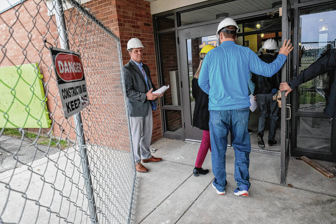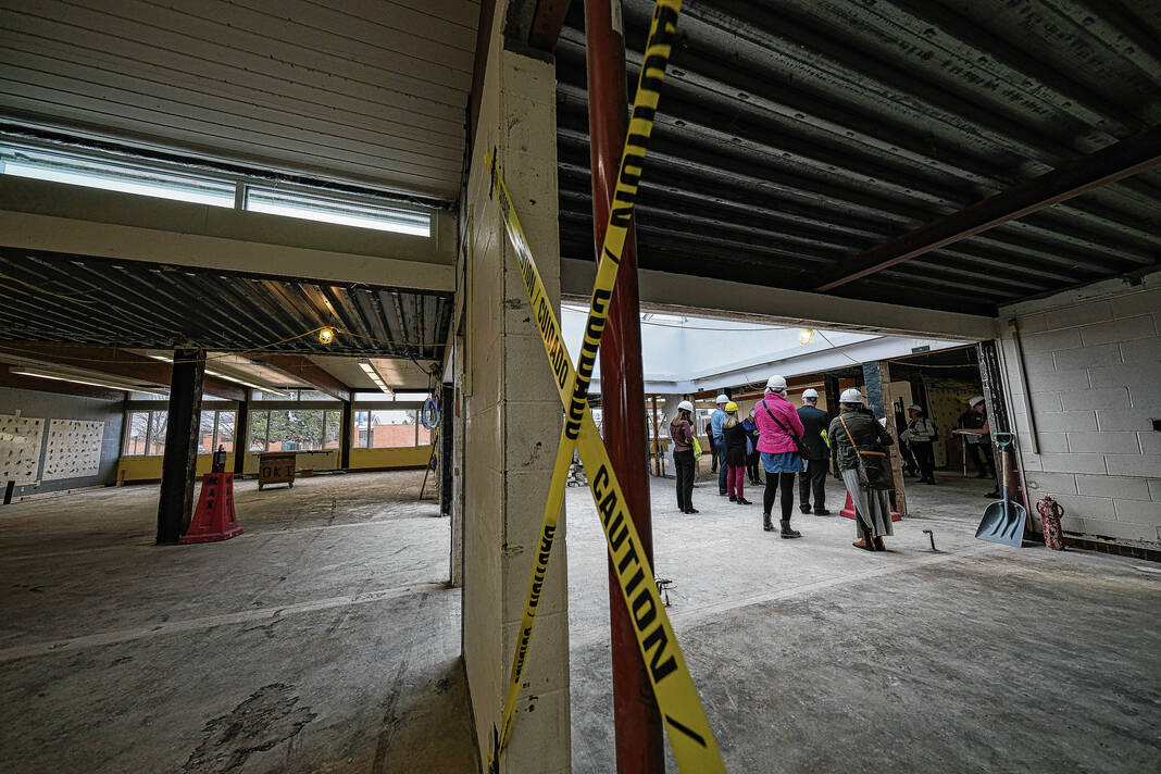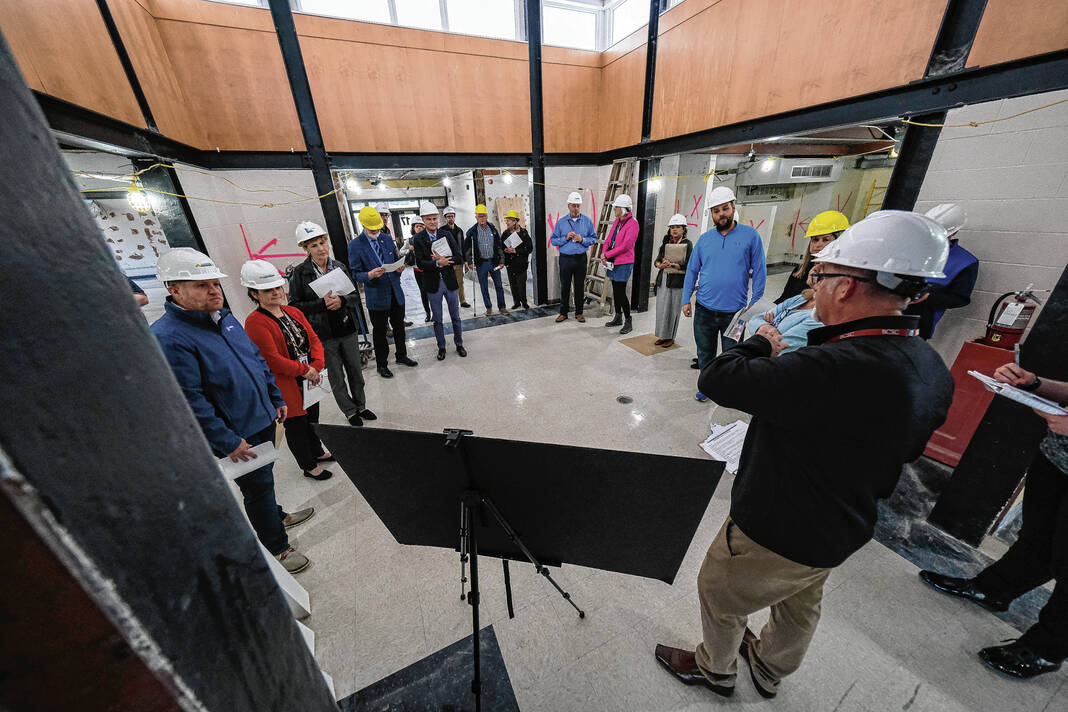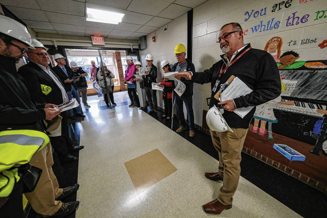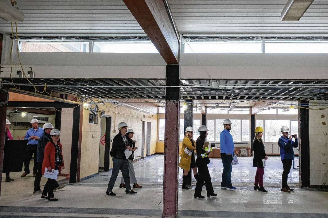 Mike Wolanin | The Republic Guests take a hard hat tour of Parkside Elementary School to view the renovations underway in Columbus, Ind., Tuesday, Nov. 29, 2022.
