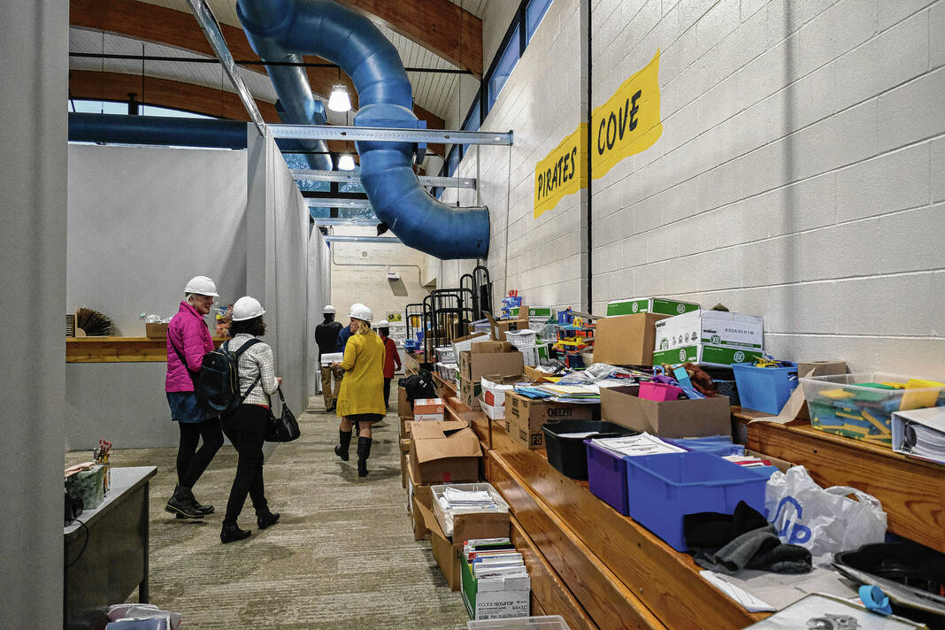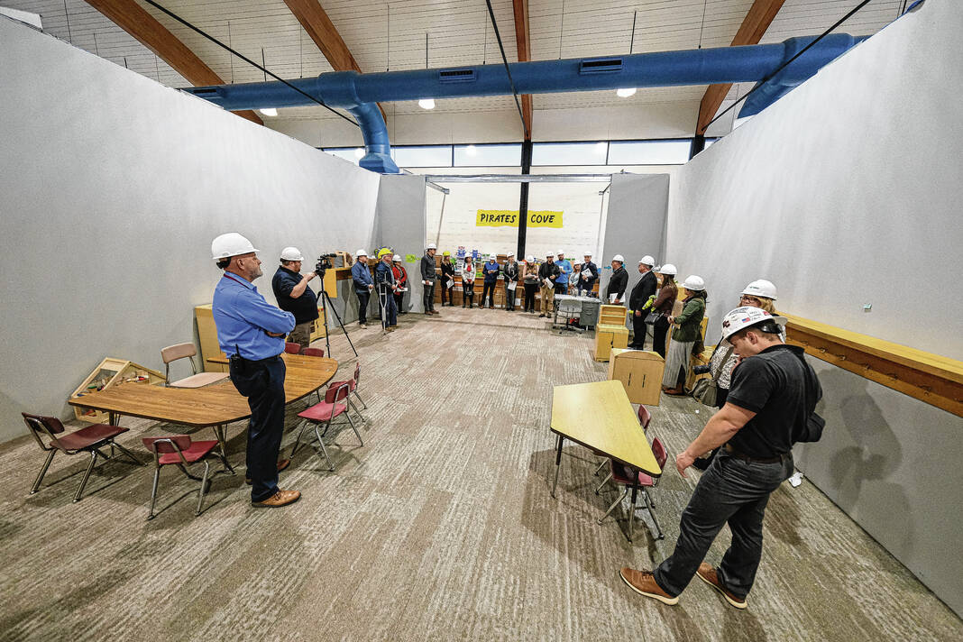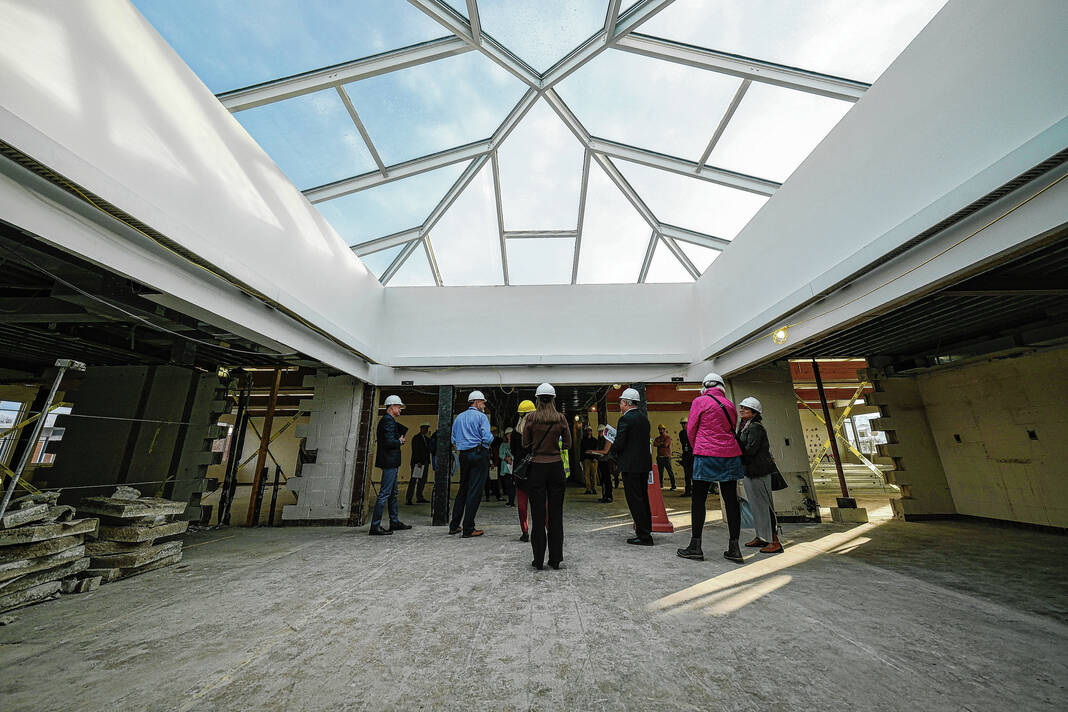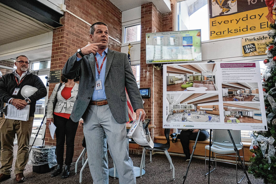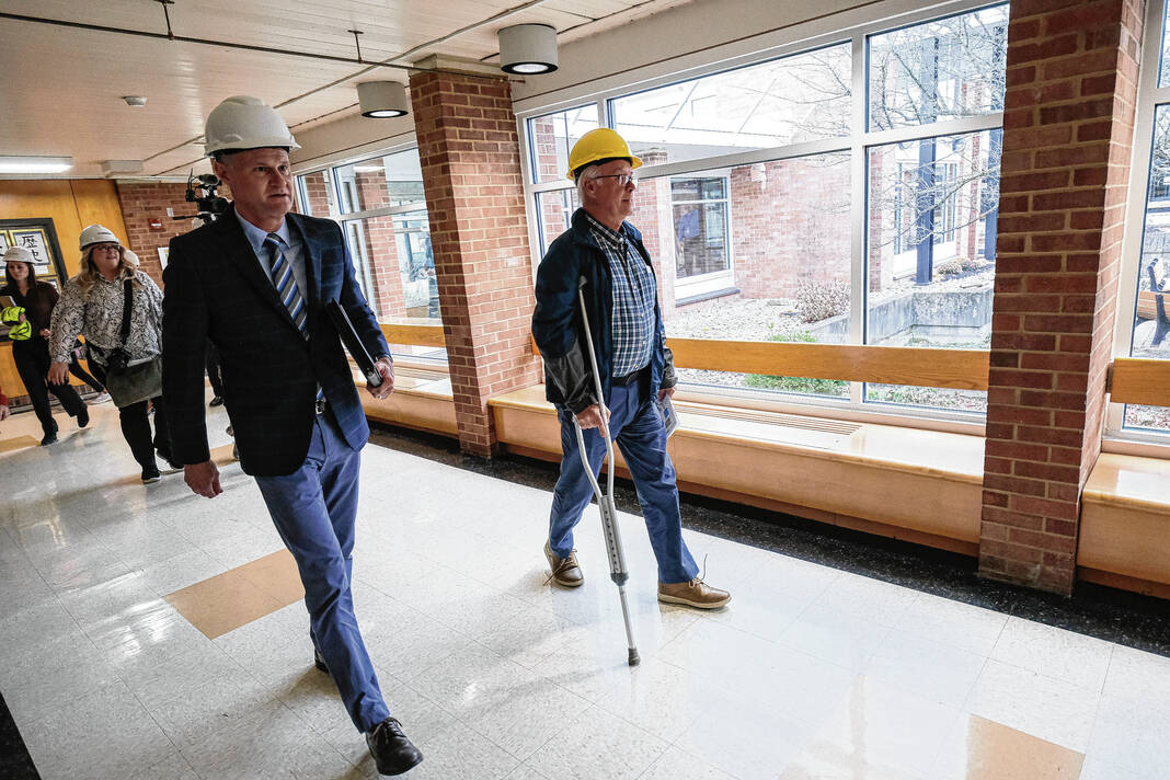 Mike Wolanin | The Republic Guests take a hard hat tour of Parkside Elementary School to view the renovations underway in Columbus, Ind., Tuesday, Nov. 29, 2022.