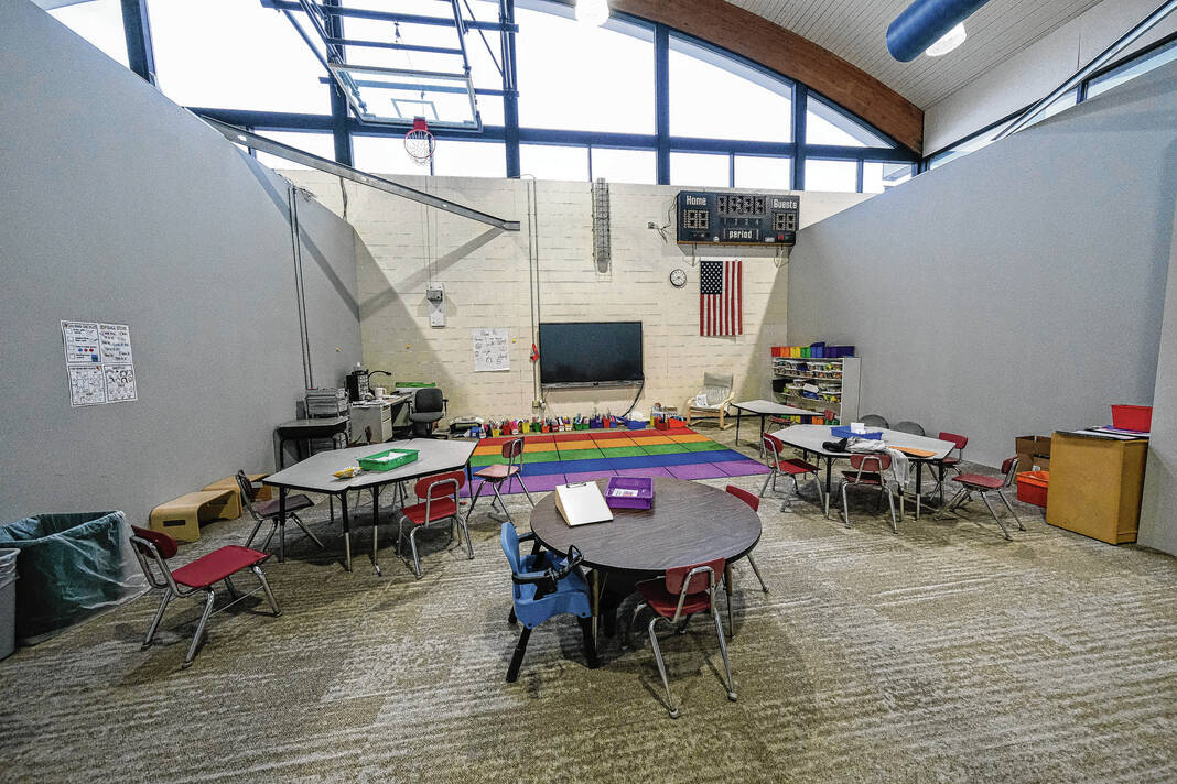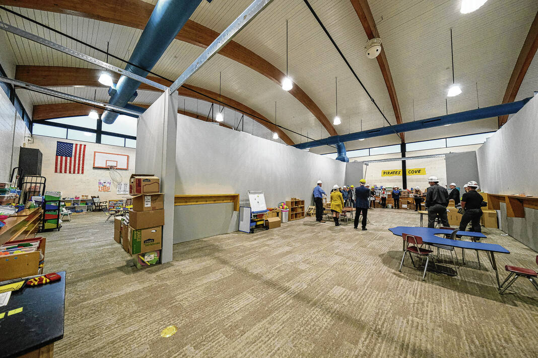 At present, kindergarteners have been moved to four temporary classrooms located in the gym. Principal Chris Smith said that physical education is largely taking place outdoors, with students going to the school’s indoor “Forum” space in the event of inclement weather.