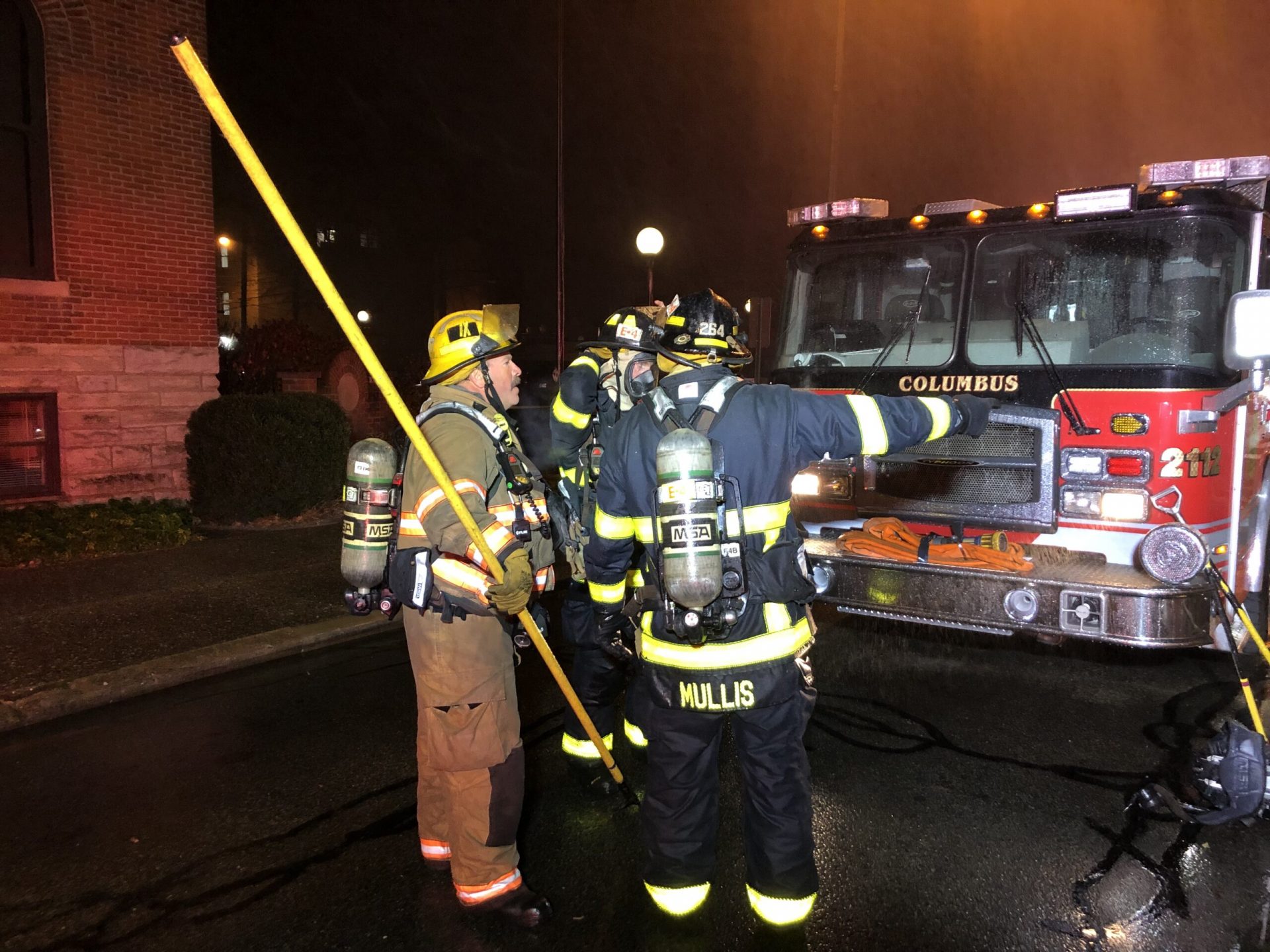 Columbus Fire Department has since updated the injury report to say one firefighter suffered a slight knee injury at the scene, but was treated at the scene and continued working.