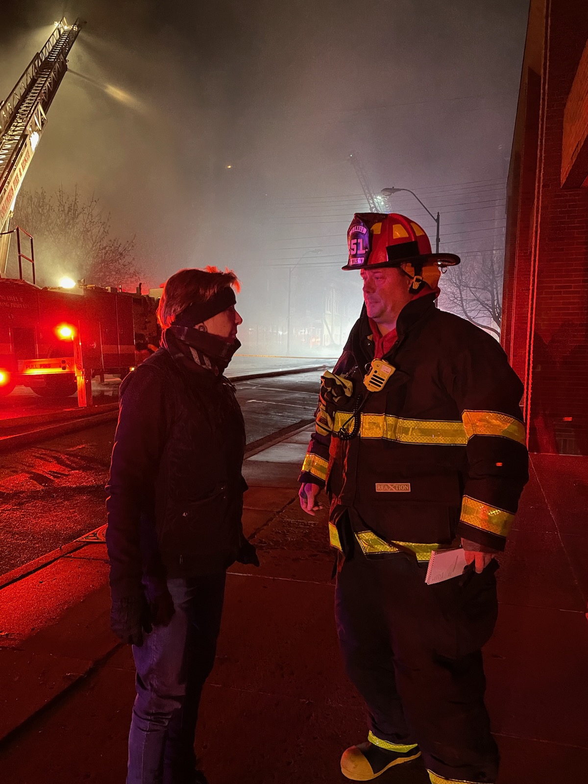 Mary Ferdon, Executive Director of Administration and Community Development, and Jamie Brinegar, city Director of Business Services, were at the scene working with firefighters and business representatives to assist. Ferdon worked with Realty One offices nearby to provide for a shelter for firefighters needing assistance, food or a heating area.