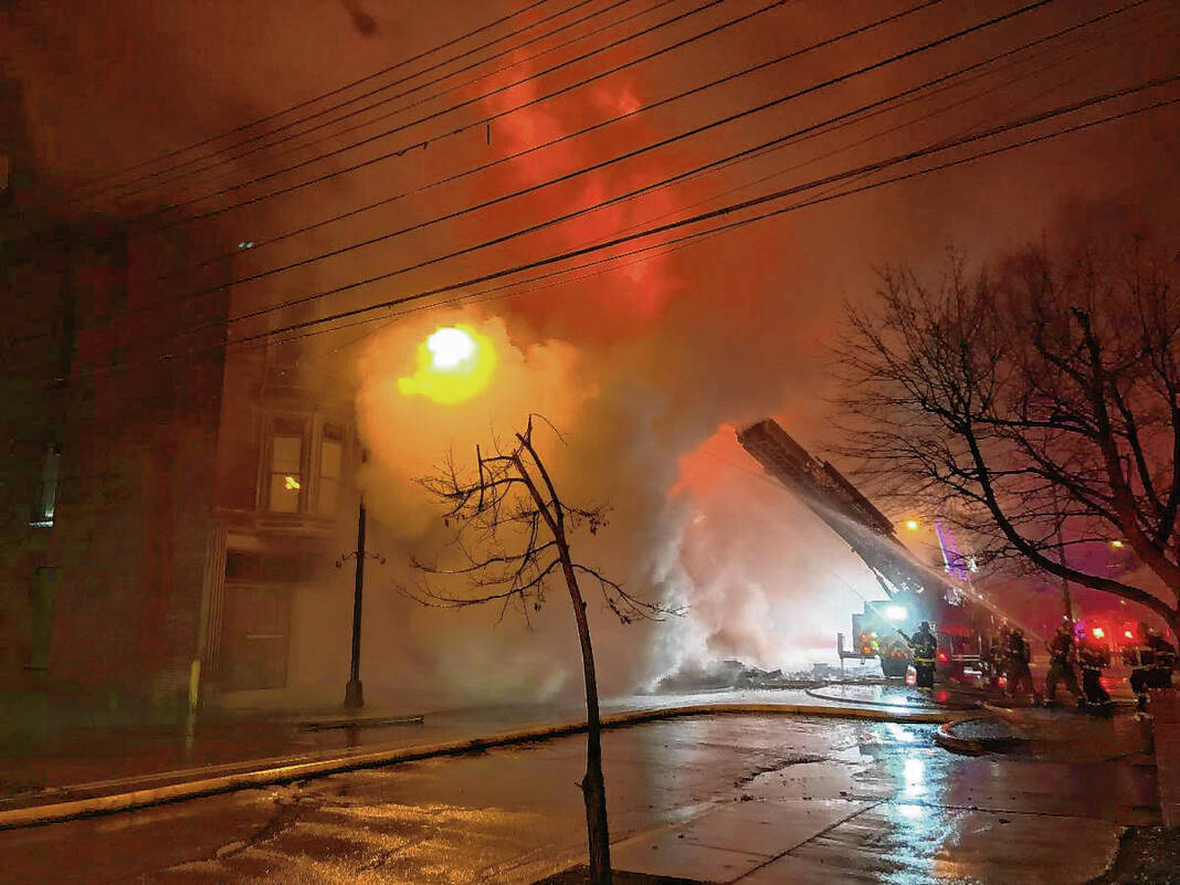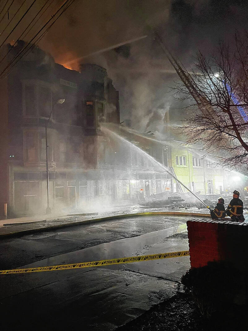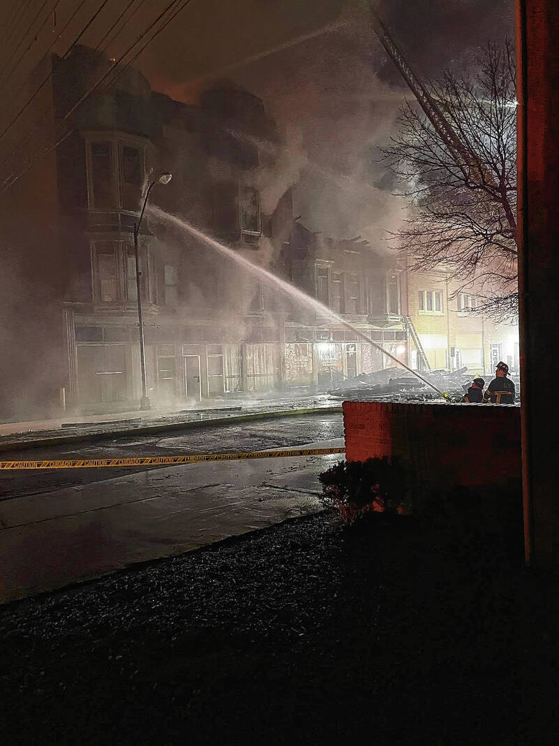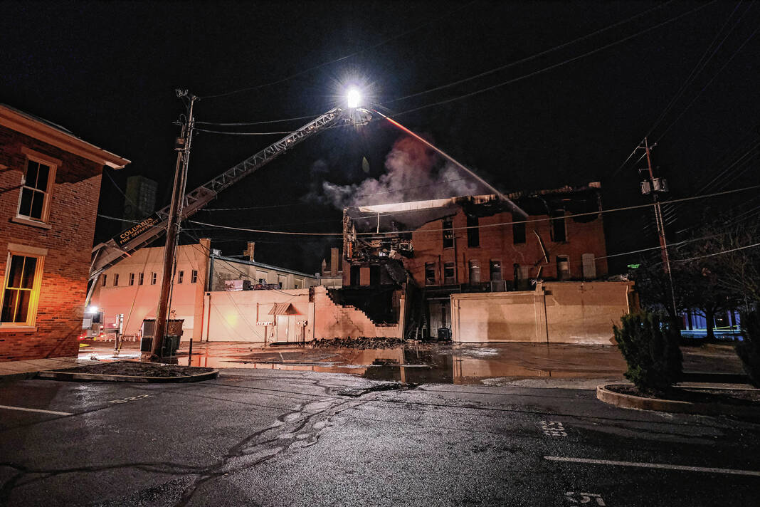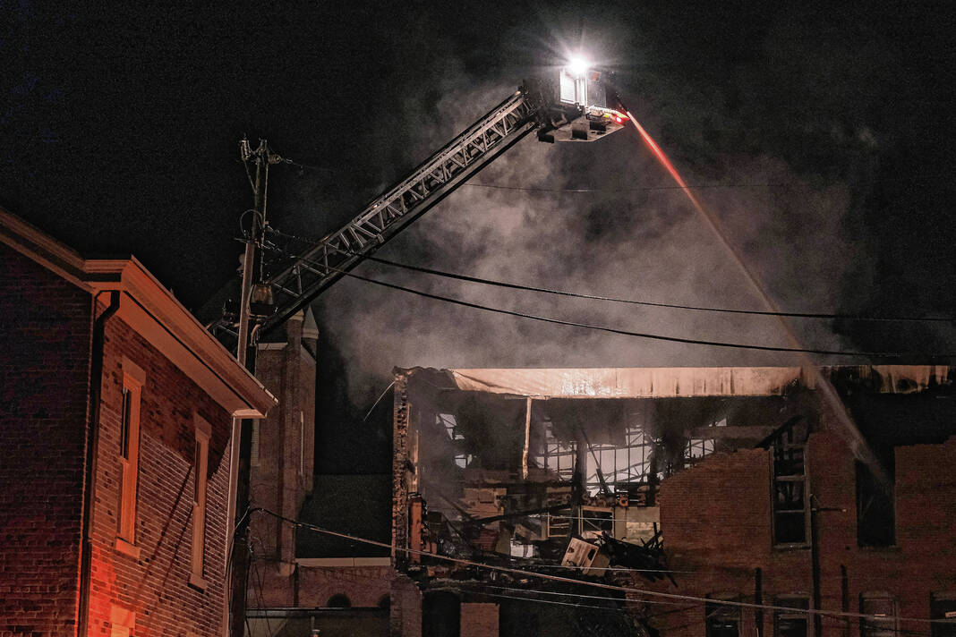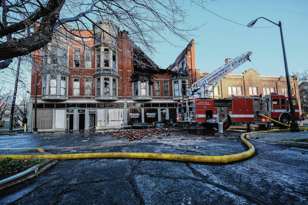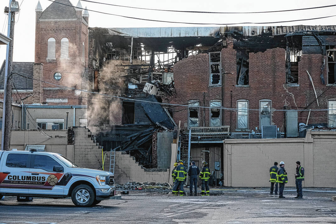 Capt. Mike Wilson, Columbus Fire Department spokesman, said a passerby initially discovered flames in the building just before midnight and called 911. When firefighters arrived, they found a well-involved fire at the rear of 440 Fifth St., and soon, a portion of a single story structure at that location collapsed.
