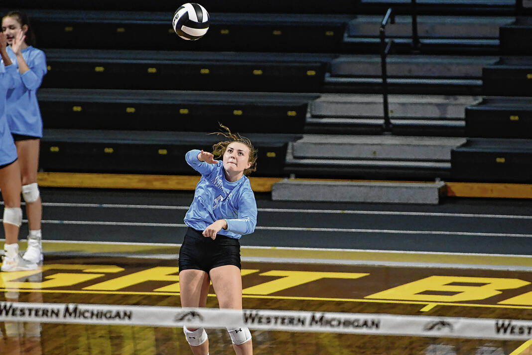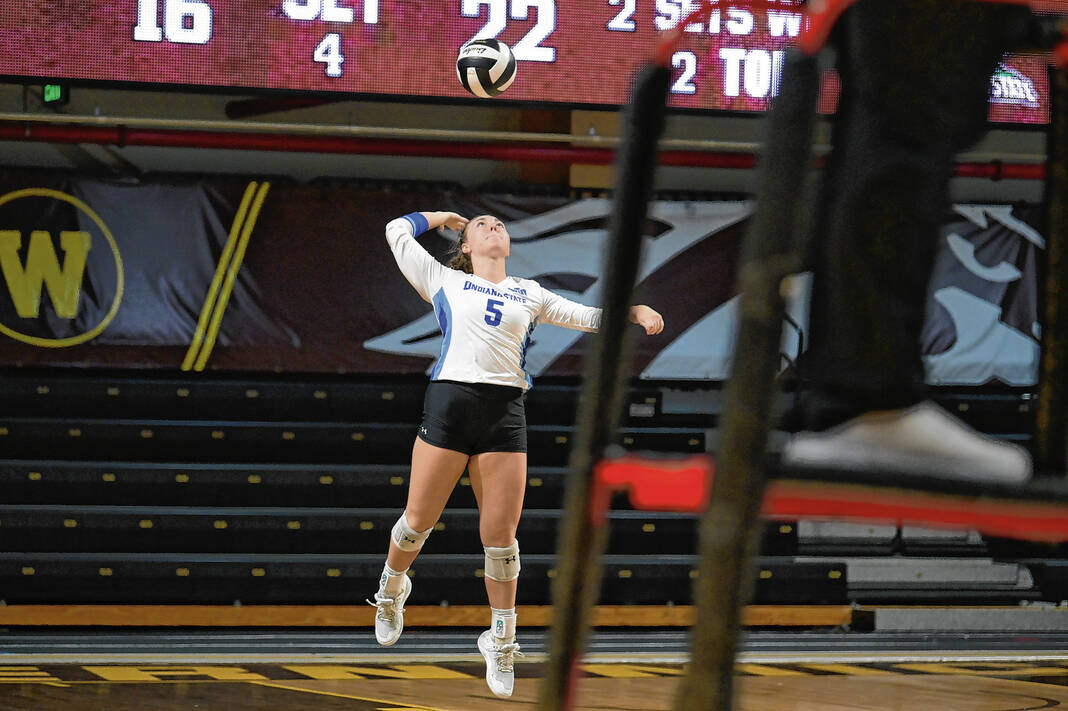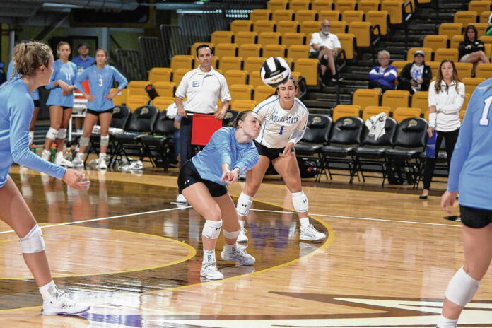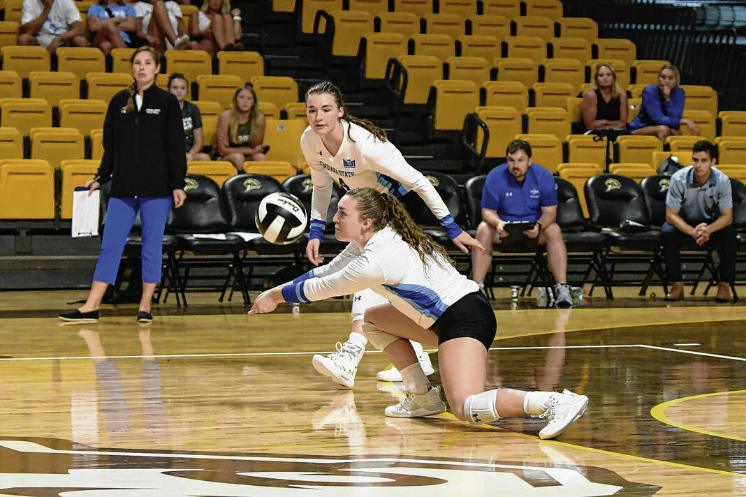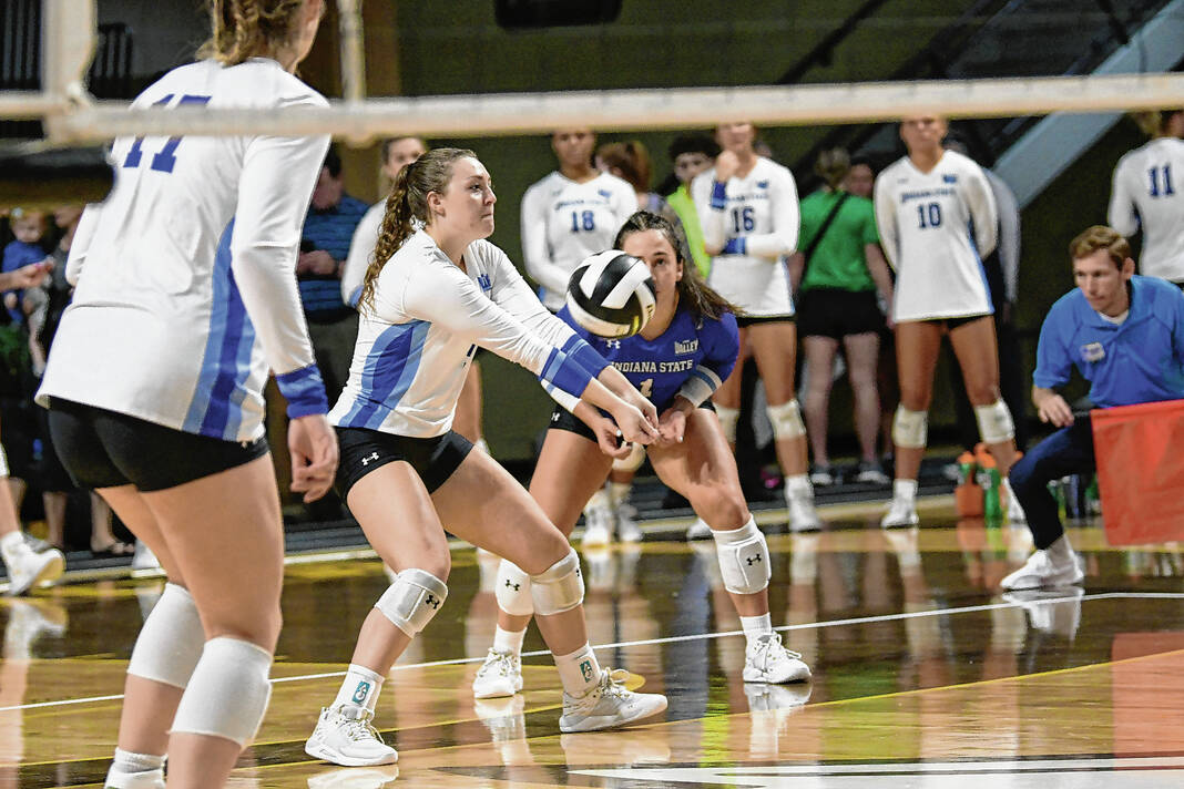 Indiana State freshman and Columbus East grad Cadence Gilley makes a play on the ball at the Western Michigan Invitational on Sept. 2, 2022.