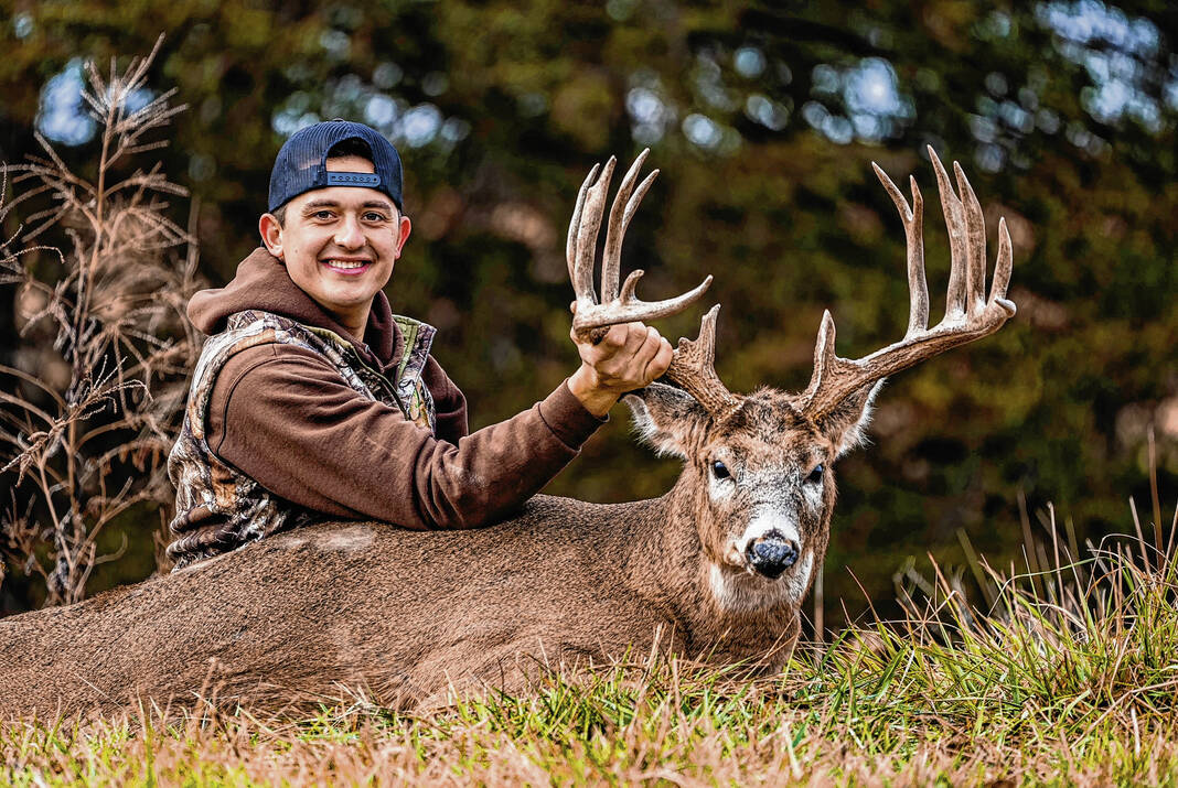 Mongrello said, “Does have transitioned heavily back to food. They’re hammering cut corn and beans. He came out following a group of four or five does. There were 40 does in the field and he pinpointed one. And a few little bucks were on her, too. When he came in range, I made the shot.”