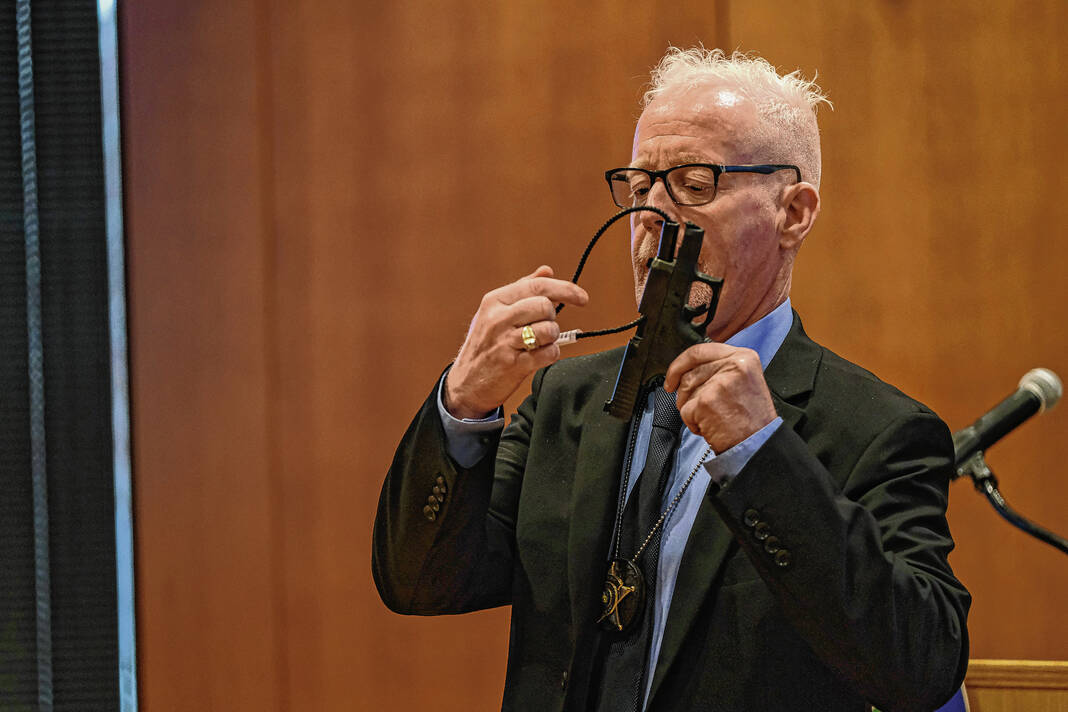 Myers, who had similar experiences to London as a child, said that while some gun owners argue that gun locks will keep them from accessing their weapon and loading it quickly in the event of an emergency, this is not accurate. He then demonstrated this by removing a cable lock — the same kind available to attendees — from a gun and loading it in front of the audience, all in about five to 10 seconds.
