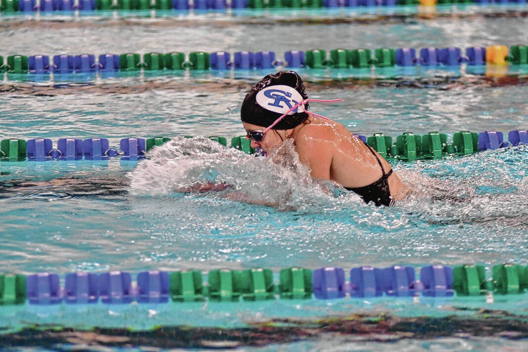 100 breaststroke: 1. Sherlock (CN) 1:13.30; 2. Trueblood (CE) 1:21.66; 3. Tregoning (CN) 1:22.37; 4. Beyer (CE) 1:24.96; 5. Grace Lykins (CE) 1:46.25.