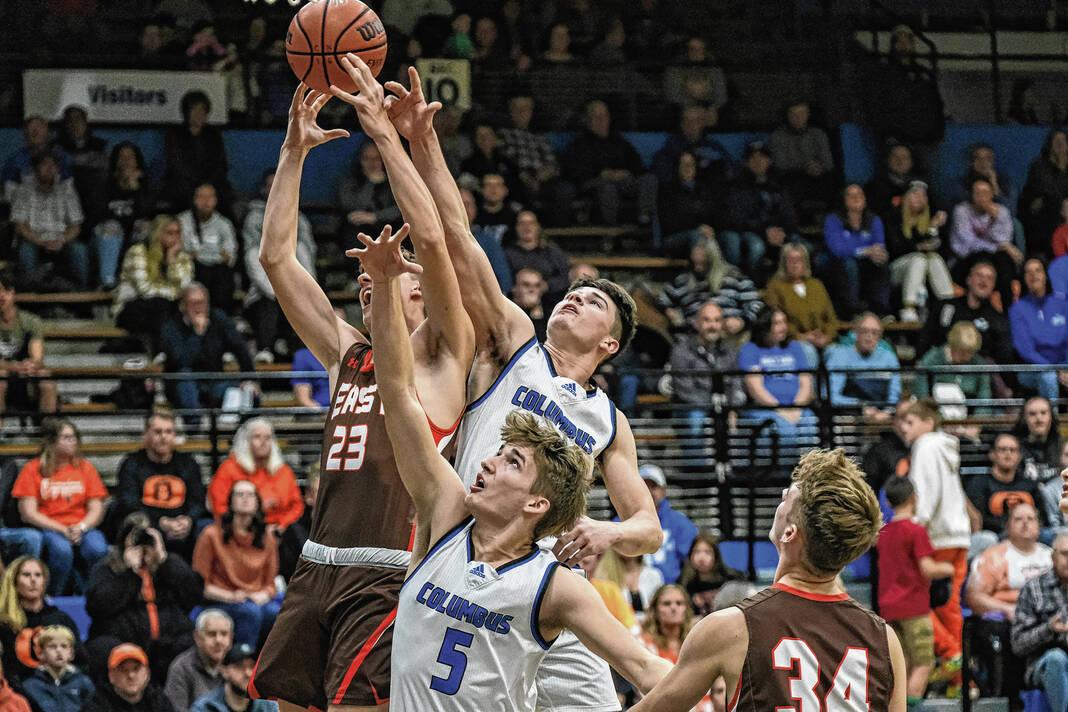 3-point goals: Columbus East 3 (Sylva, D. Coriden, Dailey); Columbus North 5 (Harmon 2, Ferguson 2, C. Horn).
