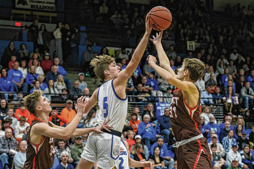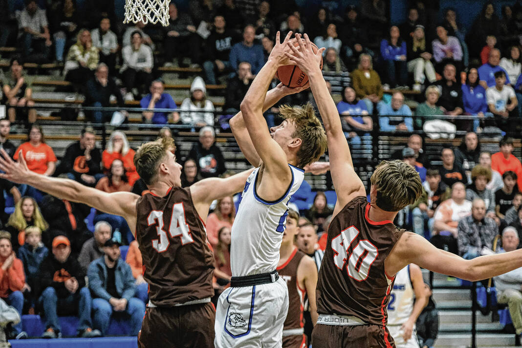 The Bull Dogs continued the momentum into the third quarter. Ty Ferguson hit two 3-pointers early in the period, Luke Harmon hit two 3s late in the third quarter and Horn banked one in at the buzzer to push the lead to 54-22.