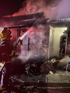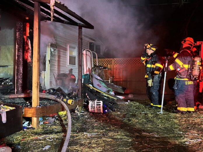 The heat from the fire melted the home’s vinyl siding and the electric utility meter located at the rear of the home. The efforts of firefighters prevented the fire from extending into the home. The interior of the home did sustain minor water and smoke damage. The apartment portion of the property sustained heavy fire damage which included damage to the building’s structural components. Damage to the property is estimated at $45,000.