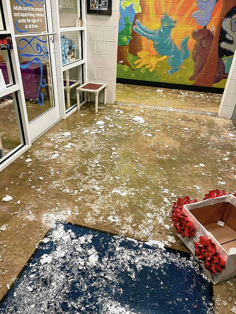 The pipes that burst were not in the animal area, though flooding did occur. Most of the damage is located in the front hallway area. All of the animals are fine, said Goodin.