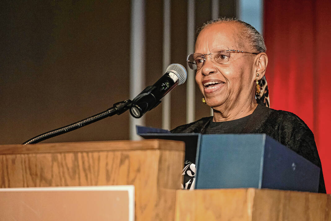 Mike Wolanin | The Republic Paulette Roberts speaks after receiving the Beloved Community Award at the Martin Luther King Jr. Day breakfast at The Commons on Monday.
